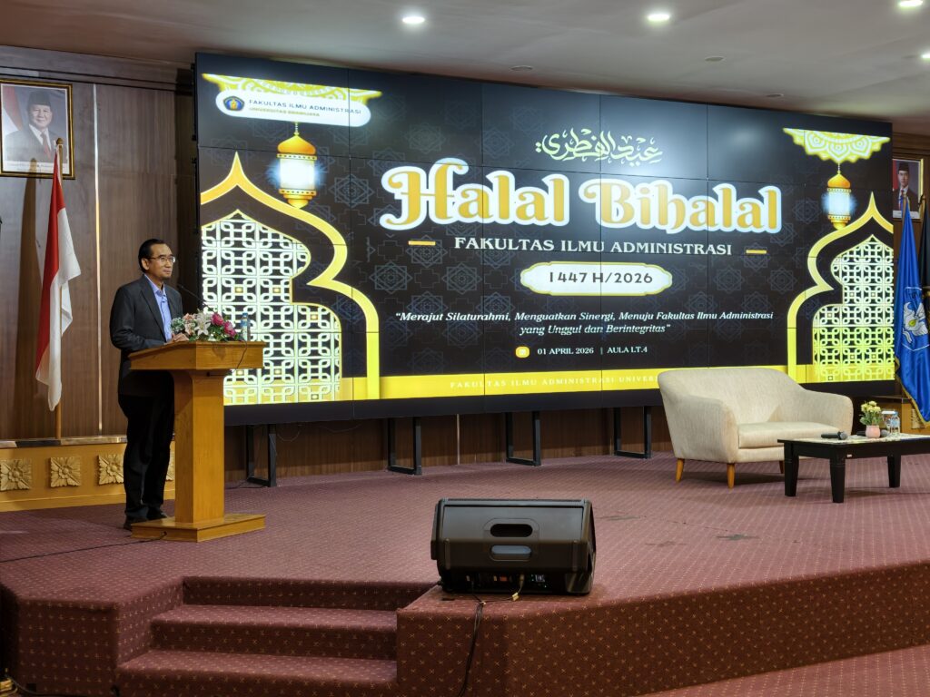 MALANG, 1 April 2026 – Suasana hangat dan penuh kekeluargaan menyelimuti Aula Lantai 4 Gedung Fakultas Ilmu Administrasi Universitas Brawijaya (FIA UB) pada Rabu (1/4). Keluarga besar FIA UB menggelar acara Halal Bihalal sebagai ajang silaturahmi sekaligus merayakan keberhasilan institusi dalam kancah pendidikan global.