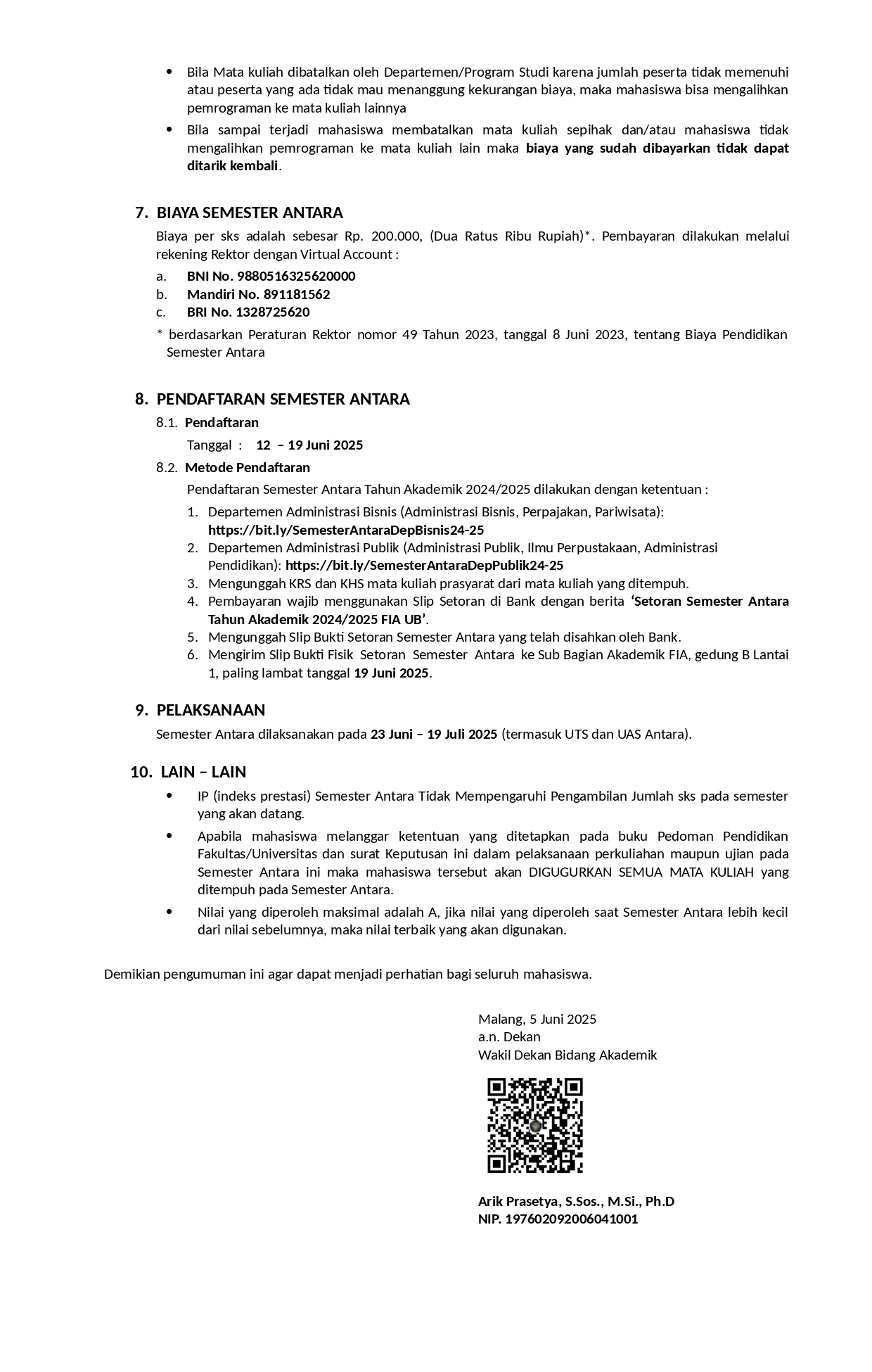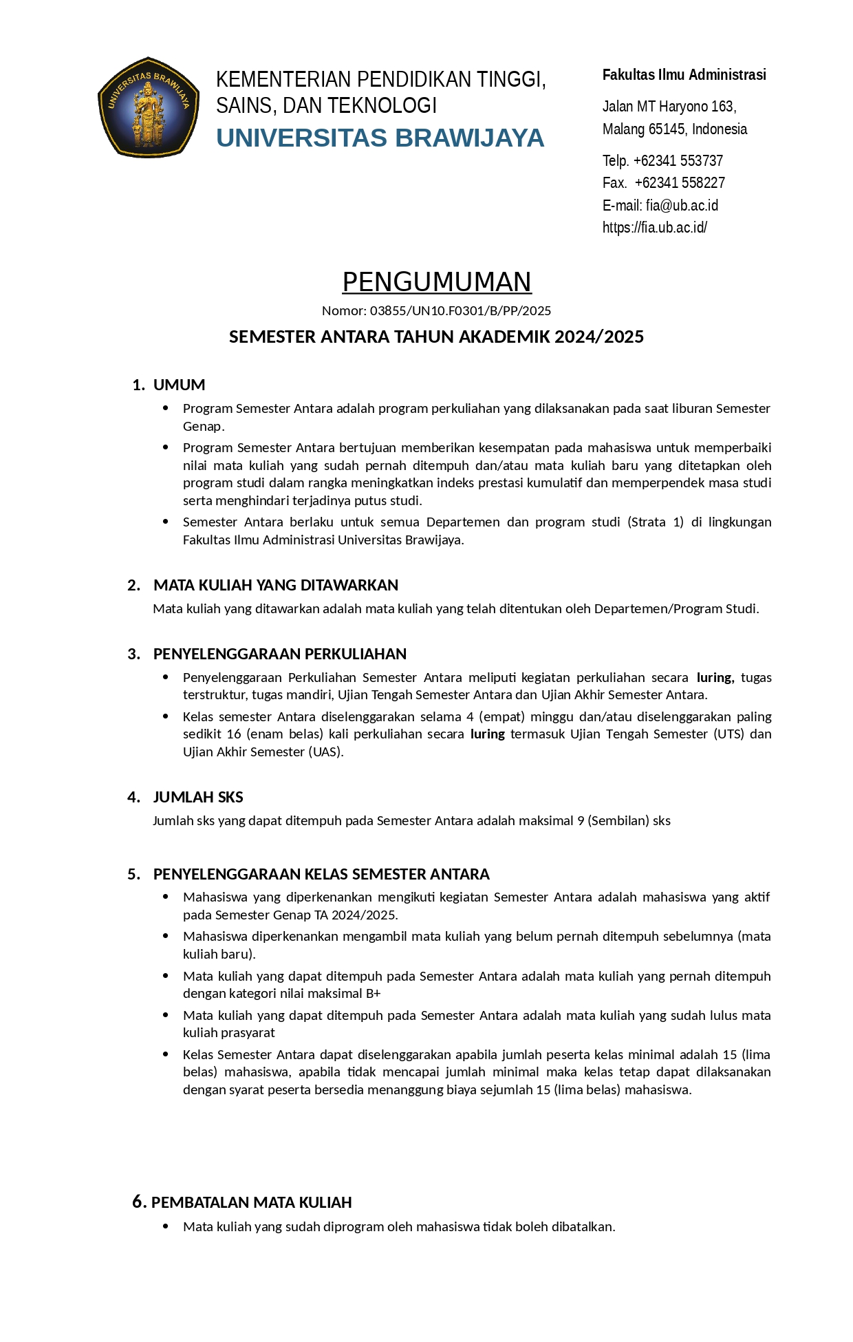 PENGUMUMAN : Pendaftaran Semester Antara TA. 2024/2025