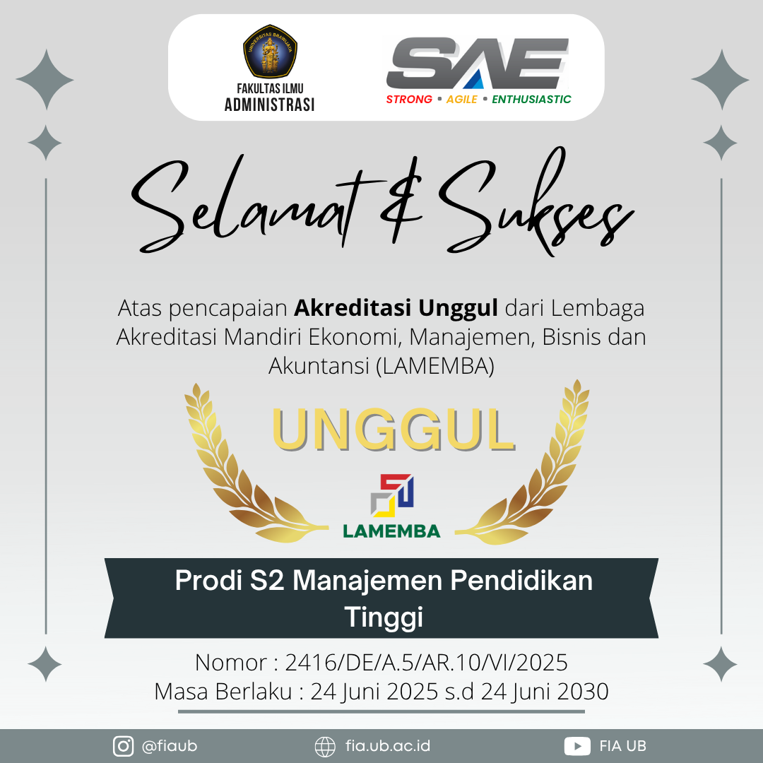 Serah terima jabatan ini diharapkan menjadi momentum bagi FIA UB untuk terus berinovasi dan berprestasi, menjadikan fakultas ini sebagai pusat keunggulan dalam bidang ilmu administrasi.
