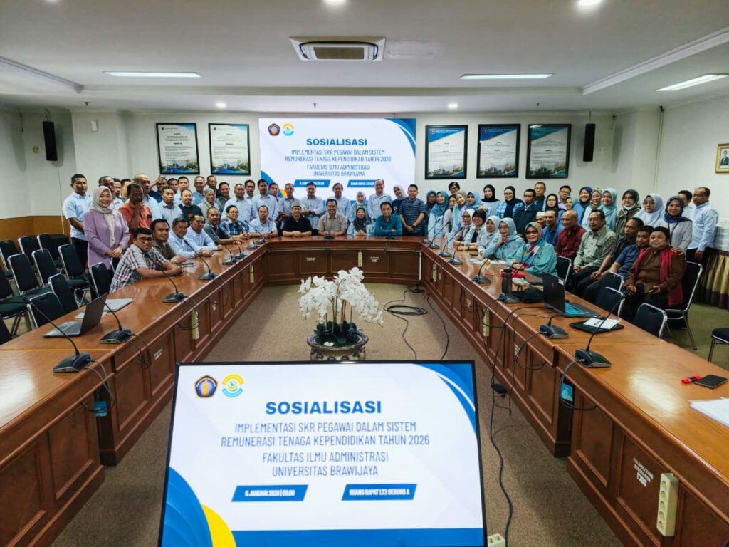 Malang, 06 Janauri 2026. Fakultas Ilmu Administrasi (FIA) Universitas Brawijaya (UB) telah melaksanakan kegiatan Sosialisasi Implementasi Standar Kemampuan Rata-Rata (SKR) Pegawai dalam Sistem Remunerasi Tenaga Kependidikan Tahun 2026. Kegiatan ini dihadiri oleh Wakil Dekan Bidang Akademik, Wakil Dekan Bidang Umum, Keuangan, dan Sumber Daya, Tim Remunerasi Universitas Brawijaya, dan seluruh tenaga kependidikan di FIA UB.