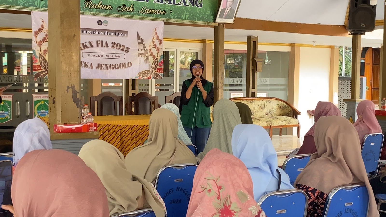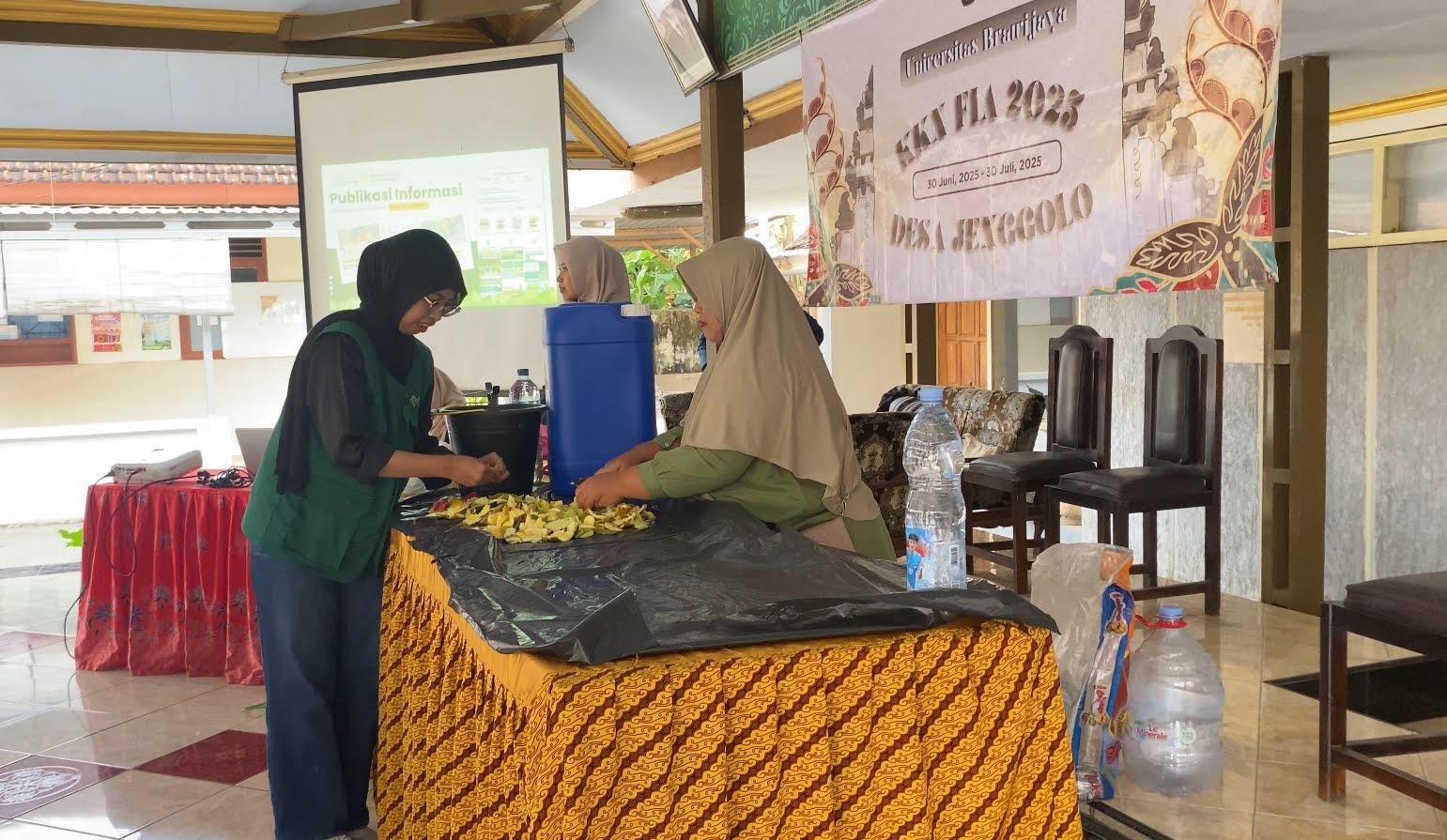 Desa Jenggolo, Kecamatan Kepanjen, Kabupaten Malang, Melvin Azaria Atha — Pada hari Kamis, 17 Juli 2025, mahasiswa Kelompok Kuliah Kerja Nyata (KKN) 03 dari Fakultas Ilmu Administrasi Universitas Brawijaya menyelenggarakan kegiatan sosialisasi dan pelatihan pembuatan Pupuk Organik Cair (POC) bertempat di Balai Desa Jenggolo. Kegiatan ini merupakan bagian dari program kerja bertema pemanfaatan limbah dapur sebagai pupuk organik (Focus on practical, low-cost methods using local waste), dengan bimbingan dari Dosen Pembimbing Lapangan (DPL) Bapak Saiful Rahman Yuniarto, S.Sos. M.AB,